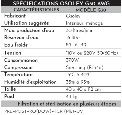 - Le Confort de l'Eau Fraîche : Contrairement au modèle d'entrée de gamme, le G30 intègre un système de réfrigération performant. Idéal pour s'hydrater lors des journées chaudes ou pour accompagner vos repas.